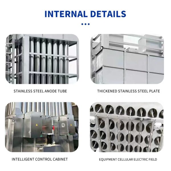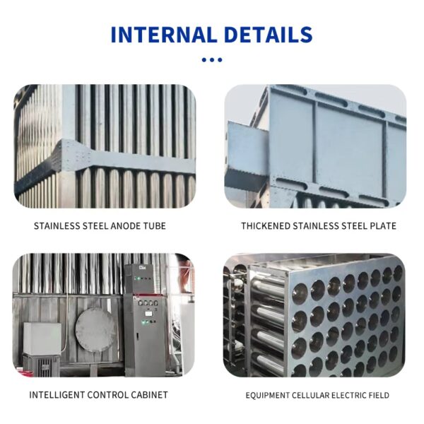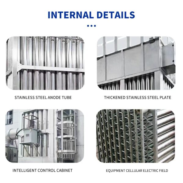 The High-Efficiency Stainless Steel Wet Electrostatic Precipitator (WESP) is a premium air purification unit designed for advanced industrial emission control. Utilizing an electrostatic field to charge fine particulates and a water film to continuously clean collection surfaces, this system ensures long-term, high-efficiency removal of submicron particles, acid fog, and oil vapors. Its vertical tubular configuration offers uniform airflow, minimal resistance, and excellent collection performance.