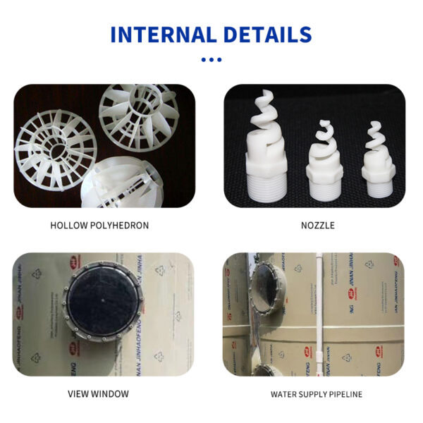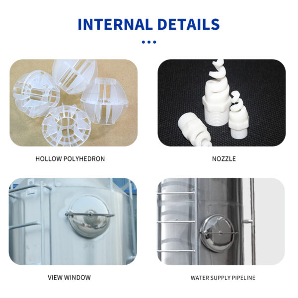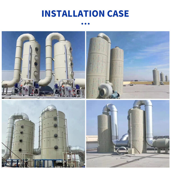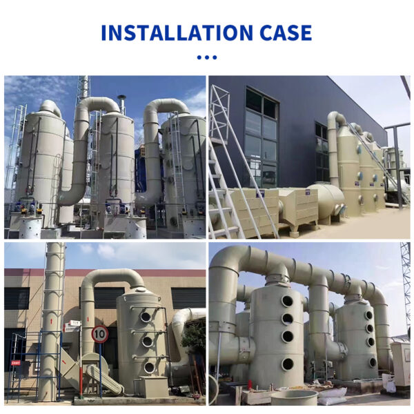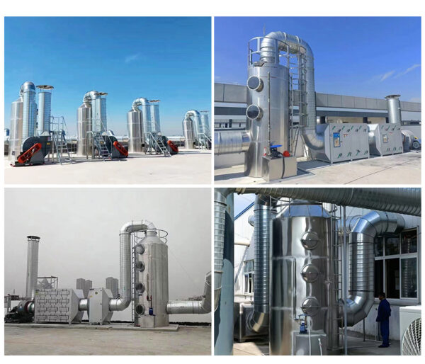 This process effectively neutralizes acidic components such as HCl, SO₂, and NH₃, while also trapping fine dust and particulate matter. Its compact design, high purification rate, and low maintenance requirements make it ideal for industries such as chemical manufacturing, electroplating, metal processing, and waste gas treatment.