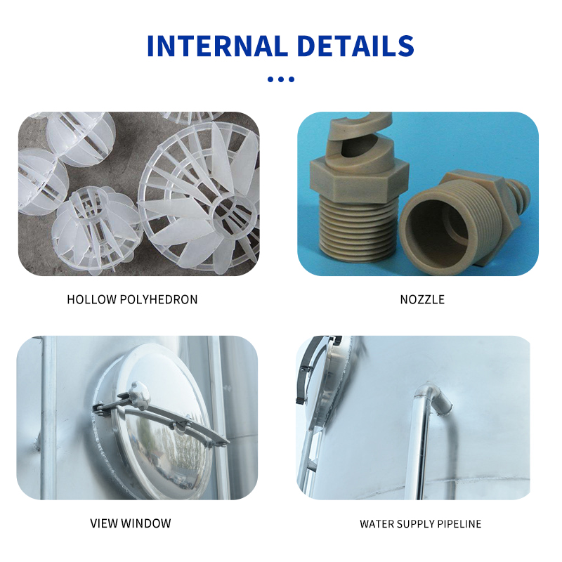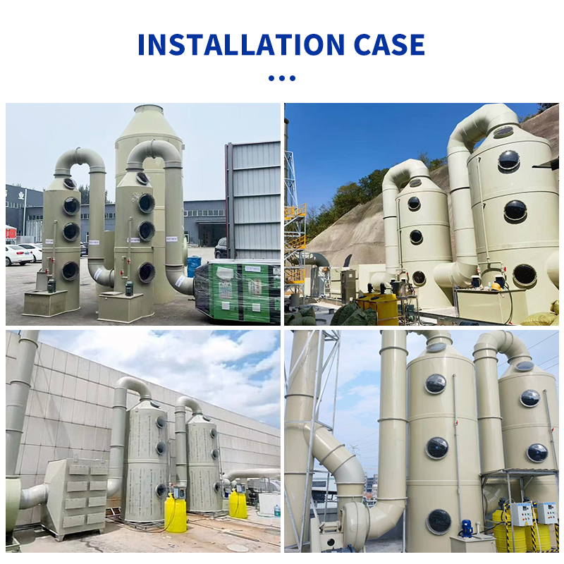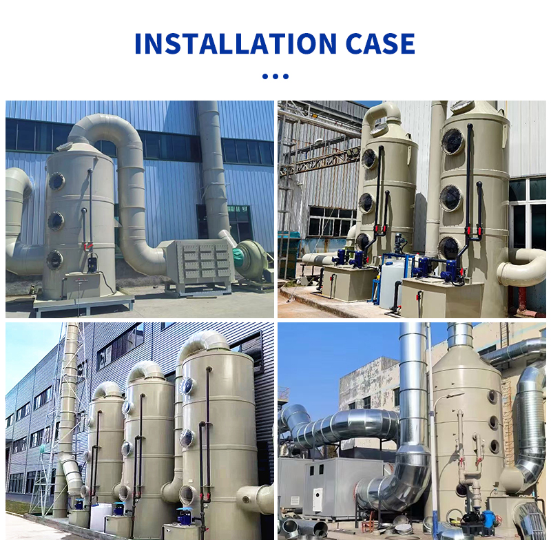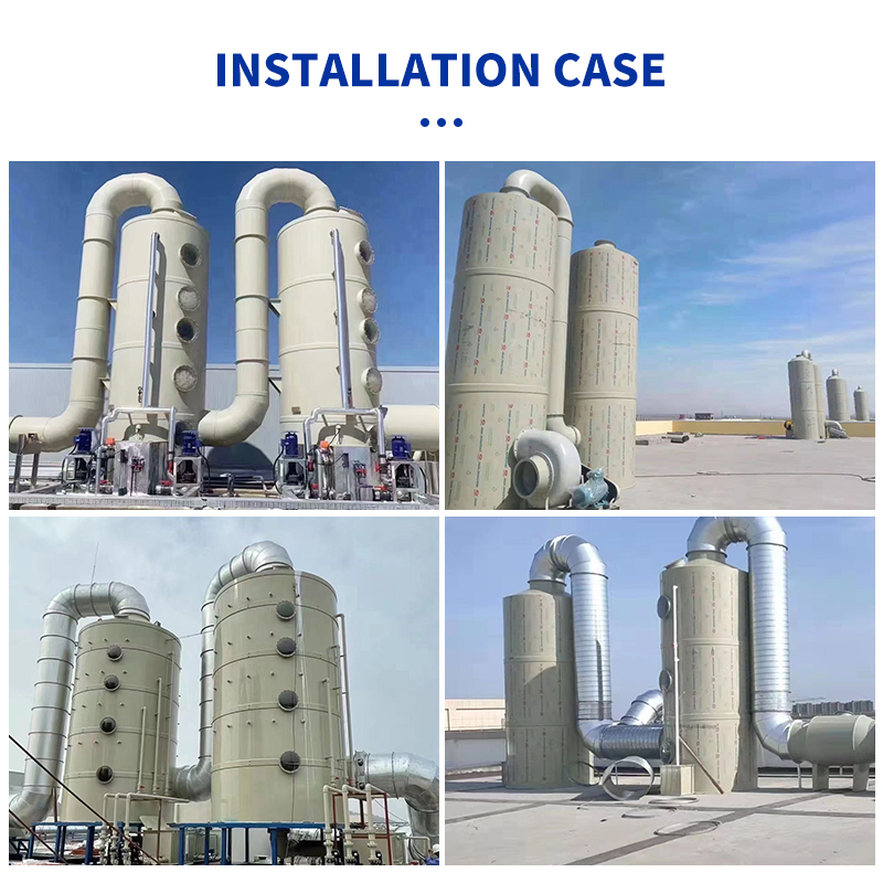 This process effectively neutralizes acidic components such as HCl, SO₂, and NH₃, while also trapping fine dust and particulate matter. Its compact design, high purification rate, and low maintenance requirements make it ideal for industries such as chemical manufacturing, electroplating, metal processing, and waste gas treatment.