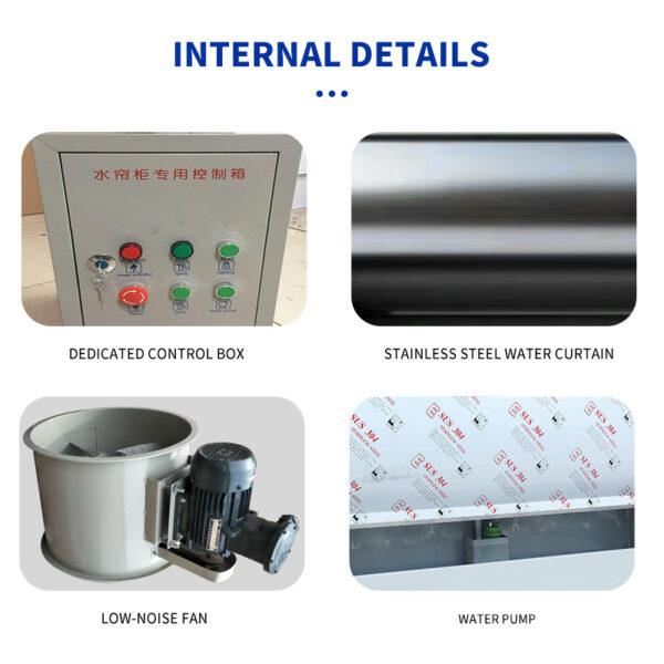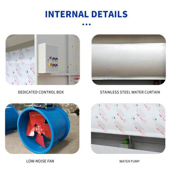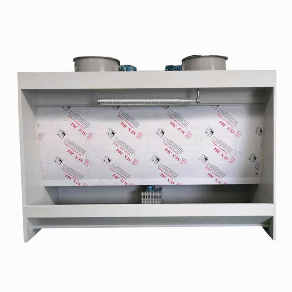 The Water Curtain Spray Booth is a compact and high-efficiency wet filtration system developed for paint shops and surface treatment operations. It utilizes a circulating water curtain to capture paint mist and airborne particles, preventing them from spreading into the workspace. Constructed with stainless steel panels and equipped with dual exhaust fans, this booth provides strong suction and smooth airflow for superior mist control.