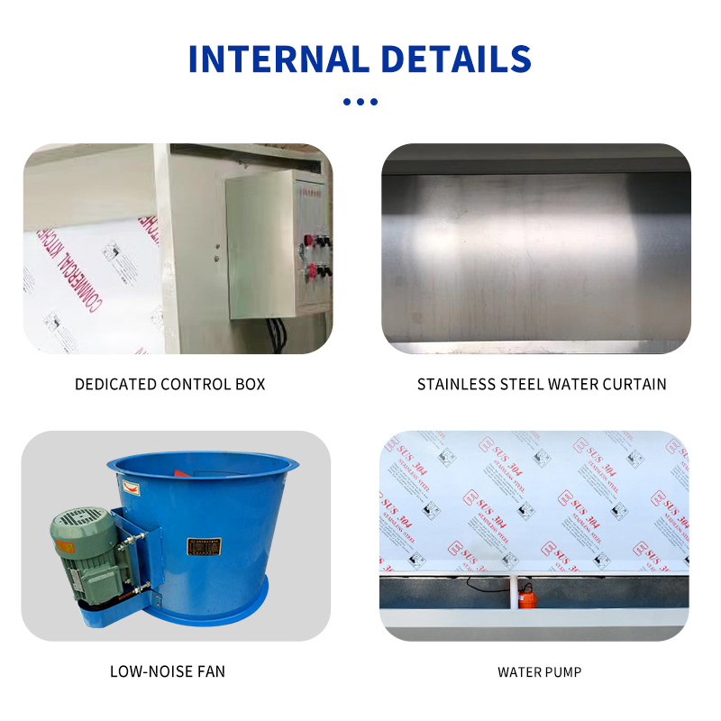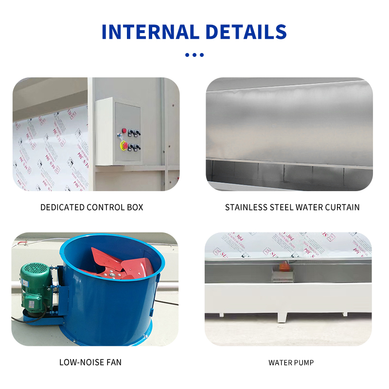 The water circulation and filtration system continuously removes paint residues, reducing maintenance frequency and extending water life. It’s ideal for painting small and medium-sized components, offering a reliable, eco-friendly solution for coating and finishing workshops.